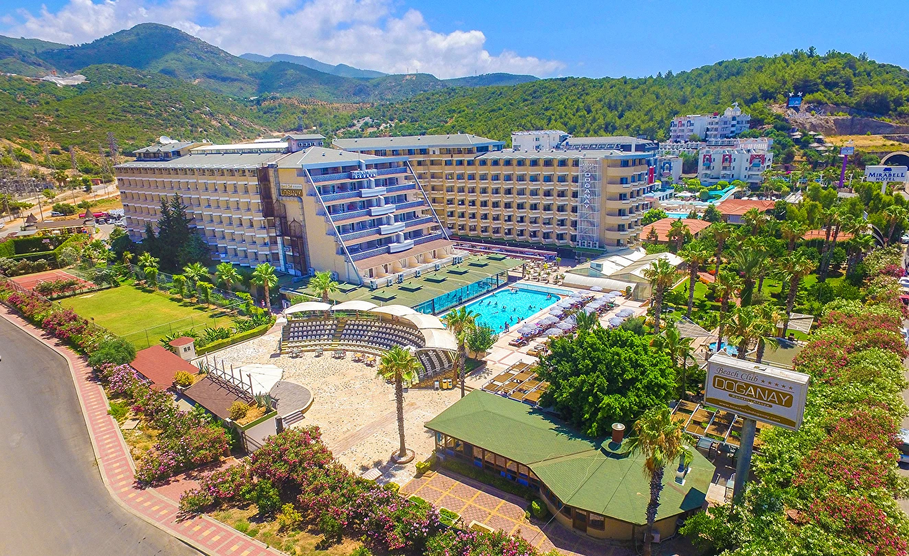 Das Beach Club Doganay Otel ist ein beliebtes All-Inclusive-Resort in der Ferienregion Alanya und überzeugt mit seiner direkten Strandnähe, großzügigen Außenanlagen und einem vielfältigen Freizeitangebot. Komfortabel eingerichtete Zimmer, mehrere Restaurants sowie Pool- und Wellnessbereiche schaffen ideale Voraussetzungen für einen entspannten Badeurlaub. Besonders Familien, Paare und Erholungssuchende schätzen das lebendige und zugleich komfortable Ambiente dieses Hotels.
